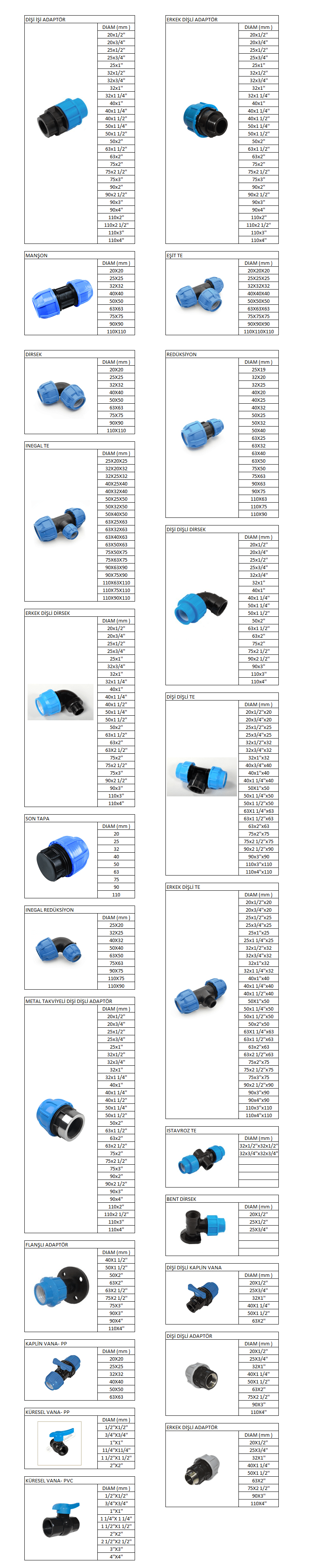 CIKAY çeşitli basınç ve ebatlarda Kaplin parçaların da satışını yapmaktadır.